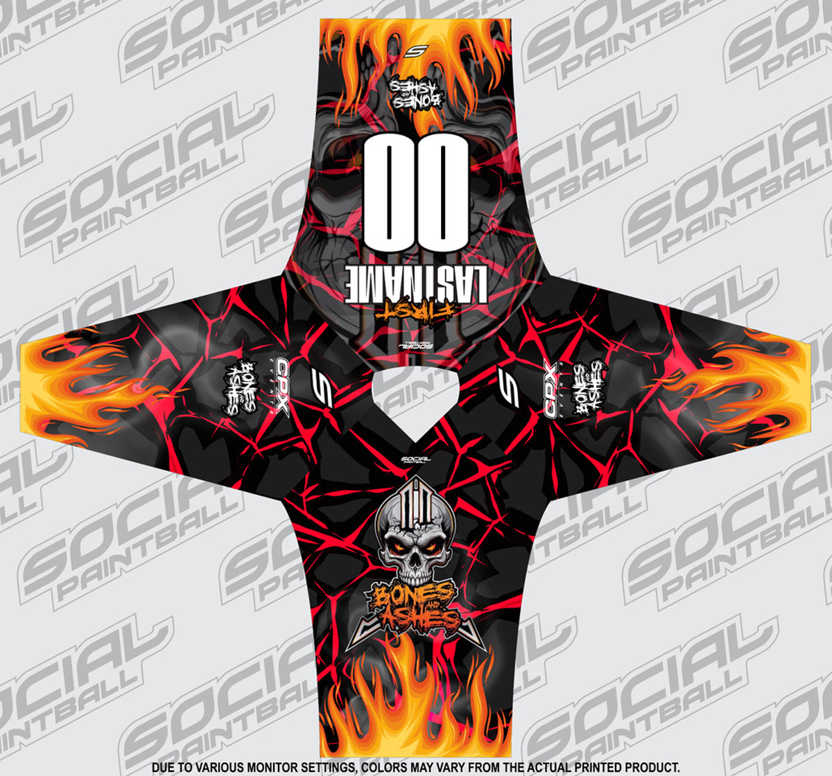 The Official Limited Edition 2026 Social Paintball and CPX Bones and Ashes event custom paintball jersey is now yours to order. This jersey is being made on a limited run for the event. This will be made on our SMPL unpadded paintball jersey cut. The jersey features our industry-first full-back mesh, mesh along the sides and under the arms, and cuffs with thumb holes.