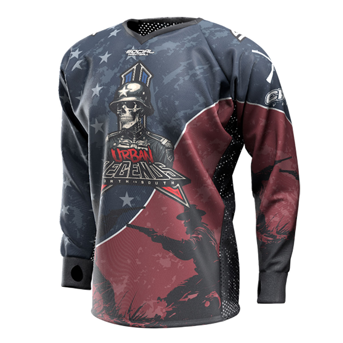 The Official Limited Edition 2026 Social Paintball and CPX Urban Legends: North vs. South event custom paintball jersey is now yours to order. This jersey is being made on a limited run for the event. This will be made on our SMPL unpadded paintball jersey cut. The jersey features our industry-first full-back mesh, mesh along the sides and under the arms, and cuffs with thumb holes.